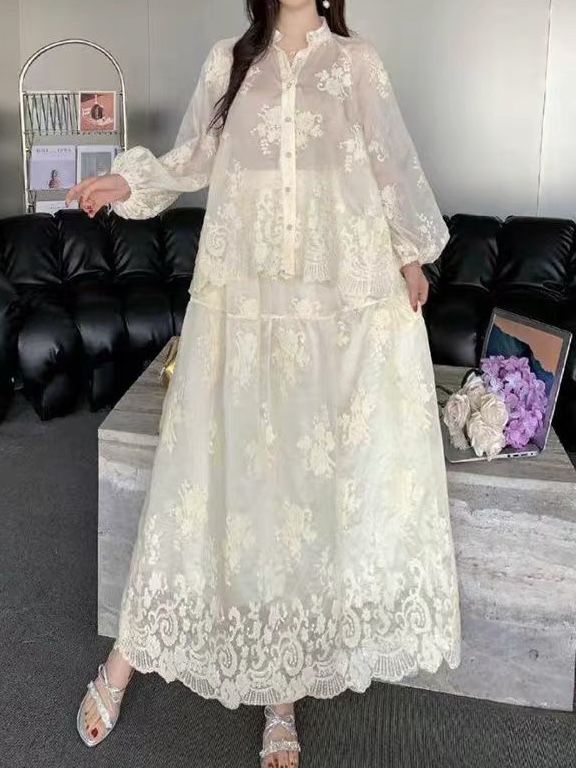 Home    /    Pants and Set    /    Sheer broderie blouse and skirt set