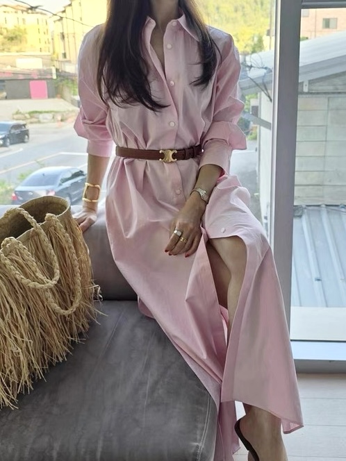 Home    /    Long Sleeve Dress    /    Long button tunic dress with slit