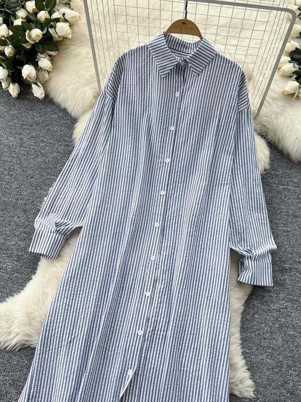 Home    /    Long Sleeve Dress    /    Long stripe button shirtdress